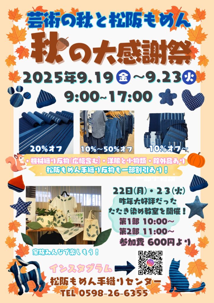 松阪もめん手織りセンターでは9月19日(金)からセールが開催されます!