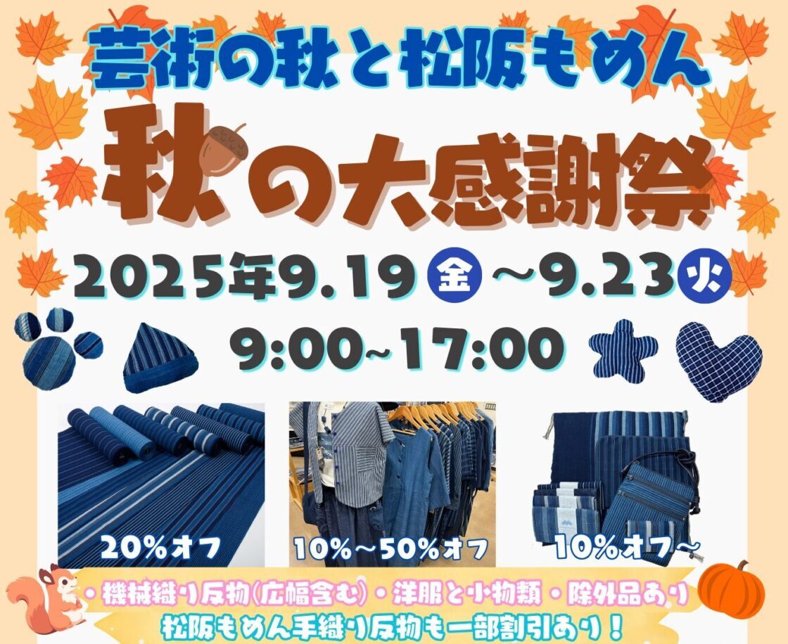 松阪もめん手織りセンターでは9月19日(金)からセールが開催されます!